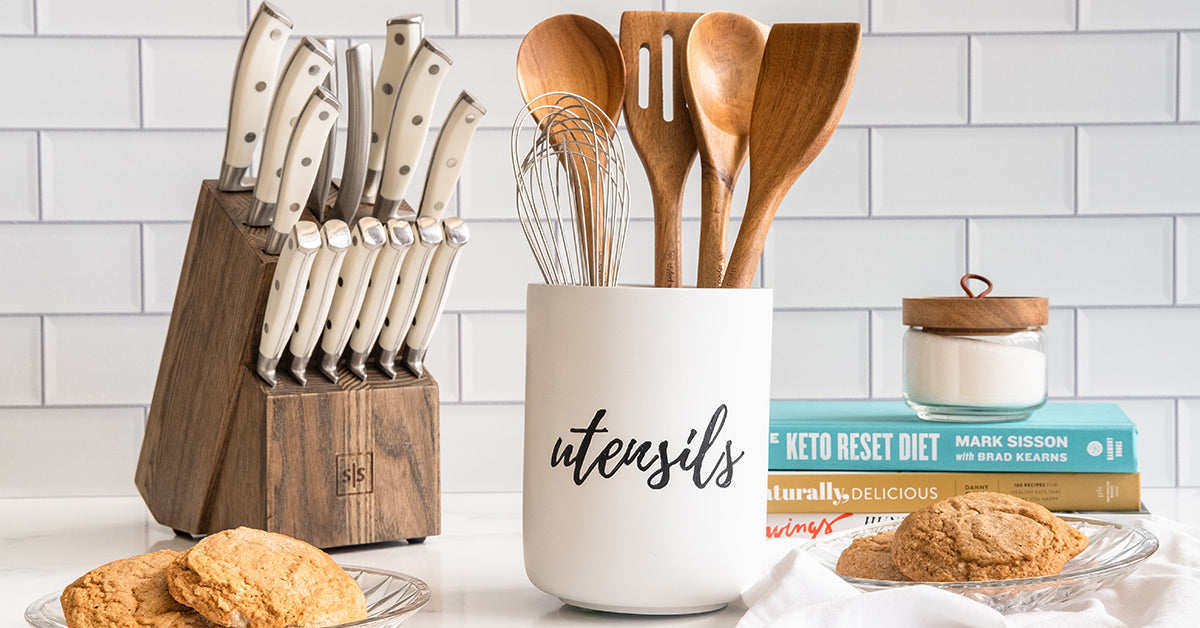 Save your drawers and accessorize your kitchen at the same time with beautiful and functional utensil holders for your countertop.